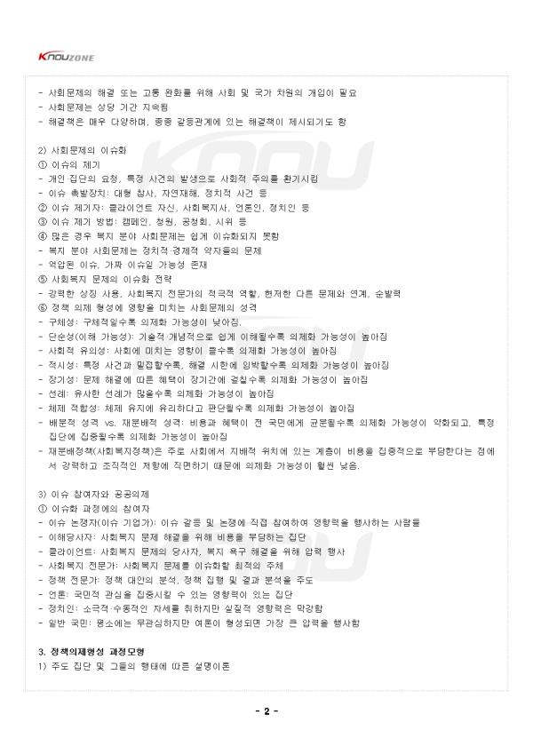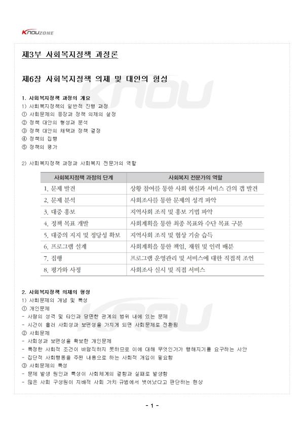 Á¦6Àå »çȸº¹ÁöÁ¤Ã¥ ÀÇÁ¦ ¹× ´ë¾ÈÀÇ Çü¼º 1. »çȸº¹ÁöÁ¤Ã¥ °úÁ¤ÀÇ °³¿ä 1) »çȸº¹ÁöÁ¤Ã¥ÀÇ ÀϹÝÀû ÁøÇà °úÁ¤ ¨ç »çȸ¹®Á¦ÀÇ µîÀå°ú Á¤Ã¥ ÀÇÁ¦ÀÇ ¼³Á¤ ¨è Á¤Ã¥ ´ë¾ÈÀÇ Çü¼º°ú ºÐ¼® ¨é Á¤Ã¥ ´ë¾ÈÀÇ Ã¤Åðú Á¤Ã¥ °áÁ¤ ¨ê Á¤Ã¥ÀÇ ÁýÇà ¨ë Á¤Ã¥ÀÇ Æò°¡ 2) »çȸº¹ÁöÁ¤Ã¥ °úÁ¤°ú »çȸº¹Áö Àü¹®°¡ÀÇ ¿ªÇÒ 2. »çȸº¹ÁöÁ¤Ã¥ ÀÇÁ¦ÀÇ Çü¼º 1) »çȸ¹®Á¦ÀÇ °³³ä ¹× Ư¼º ¨ç °³Àι®Á¦ - »ç¶÷ÀÇ ¼º°Ý ¹× ŸÀΰú ´ç¸éÇÑ °ü°èÀÇ ¹üÀ§ ³»¿¡ ÀÖ´Â ¹®Á¦ - ½Ã°£ÀÌ Èê·¯ »çȸ¼º°ú º¸Æí¼ºÀ» °¡Áö°Ô µÇ¸é »çȸ¹®Á¦·Î ÀüȯµÊ ¨è »çȸ¹®Á¦ - »çȸ¼º°ú º¸Æí¼ºÀ» È®º¸ÇÑ °³Àι®Á¦ - ƯÁ¤ÇÑ »çȸÀû Á¶°ÇÀÌ ¹Ù¶÷Á÷ÇÏÁö ¸øÇϹǷΠÀÌ¿¡ ´ëÇØ ¹«¾ùÀΰ¡°¡ ÇàÇØÁö±â¸¦ ¿ä±¸ÇÏ´Â »ç¾È - Áý´ÜÀû »çȸÇൿÀ» ÁÖµÈ ³»¿ëÀ¸·Î ÇÏ´Â »çȸÀû °³ÀÔÀÌ ÇÊ¿äÇÔ ¨é »çȸ¹®Á¦ÀÇ Æ¯¼º - ¹®Á¦ ¹ß»ý ¿øÀΰú Ư¼ºÀÌ »çȸü°èÀÇ °áÇÔ°ú ½ÇÆÐ·Î ¹ß»ýÇÔ - ¸¹Àº »çȸ ±¸¼º¿øÀÌ Áö¹èÀû »çȸ °¡Ä¡¡¤±Ô¹ü¿¡¼ ¹þ¾î³µ´Ù°í ÆÇ´ÜÇÏ´Â Çö»ó - »çȸ¹®Á¦ÀÇ ÇØ°á ¶Ç´Â °íÅë ¿Ïȸ¦ À§ÇØ »çȸ ¹× ±¹°¡ Â÷¿øÀÇ °³ÀÔÀÌ ÇÊ¿ä - »çȸ¹®Á¦´Â »ó´ç ±â°£ Áö¼ÓµÊ - ÇØ°áÃ¥Àº ¸Å¿ì ´Ù¾çÇϸç, Á¾Á¾ °¥µî°ü°è¿¡ ÀÖ´Â ÇØ°áÃ¥ÀÌ Á¦½ÃµÇ±âµµ ÇÔ 2) »çȸ¹®Á¦ÀÇ À̽´È ¨ç À̽´ÀÇ Á¦±â - °³ÀΡ¤Áý´ÜÀÇ ¿äû, ƯÁ¤ »ç°ÇÀÇ ¹ß»ýÀ¸·Î »çȸÀû ÁÖÀǸ¦ ȯ±â½ÃÅ´ - À̽´ Ã˹ßÀåÄ¡: ´ëÇü Âü»ç, ÀÚ¿¬ÀçÇØ, Á¤Ä¡Àû »ç°Ç µî ¨è À̽´ Á¦±âÀÚ: Ŭ¶óÀÌ¾ðÆ® ÀÚ½Å, »çȸº¹Áö»ç, ¾ð·ÐÀÎ, Á¤Ä¡ÀÎ µî ¨é À̽´ Á¦±â ¹æ¹ý: Ä·ÆäÀÎ, û¿ø, °øÃ»È¸, ½ÃÀ§ µî ¨ê ¸¹Àº °æ¿ì º¹Áö ºÐ¾ß »çȸ¹®Á¦´Â ½±°Ô À̽´ÈµÇÁö ¸øÇÔ - º¹Áö ºÐ¾ß »çȸ¹®Á¦´Â Á¤Ä¡Àû¡¤°æÁ¦Àû ¾àÀÚµéÀÇ ¹®Á¦ - ¾ï¾ÐµÈ À̽´, °¡Â¥ À̽´ÀÏ °¡´É¼º Á¸Àç ¨ë »çȸº¹Áö ¹®Á¦ÀÇ À̽´È Àü·« - °·ÂÇÑ »ó¡ »ç¿ë, »çȸº¹Áö Àü¹®°¡ÀÇ Àû±ØÀû ¿ªÇÒ, ÇöÀúÇÑ ´Ù¸¥ ¹®Á¦¿Í ¿¬°è, ¼ø¹ß·Â ¨ì Á¤Ã¥ ÀÇÁ¦ Çü¼º¿¡ ¿µÇâÀ» ¹ÌÄ¡´Â »çȸ¹®Á¦ÀÇ ¼º°Ý - ±¸Ã¼¼º: ±¸Ã¼ÀûÀϼö·Ï ÀÇÁ¦È °¡´É¼ºÀÌ ³·¾ÆÁü. - ´Ü¼ø¼º(ÀÌÇØ °¡´É¼º): ±â¼úÀû¡¤°³³äÀûÀ¸·Î ½±°Ô ÀÌÇØµÉ¼ö·Ï ÀÇÁ¦È °¡´É¼ºÀÌ ³ô¾ÆÁü - »çȸÀû À¯ÀǼº: »çȸ¿¡ ¹ÌÄ¡´Â ¿µÇâÀÌ Å¬¼ö·Ï ÀÇÁ¦È °¡´É¼ºÀÌ ³ô¾ÆÁü - Àû½Ã¼º: ƯÁ¤ »ç°Ç°ú ¹ÐÁ¢ÇÒ¼ö·Ï, ÇØ°á ½ÃÇÑ¿¡ ÀÓ¹ÚÇÒ¼ö·Ï ÀÇÁ¦È °¡´É¼ºÀÌ ³ô¾ÆÁü - Àå±â¼º: ¹®Á¦ ÇØ°á¿¡ µû¸¥ ÇýÅÃÀÌ Àå±â°£¿¡ °ÉÄ¥¼ö·Ï ÀÇÁ¦È °¡´É¼ºÀÌ ³ô¾ÆÁü - ¼±·Ê: À¯»çÇÑ ¼±·Ê°¡ ¸¹À»¼ö·Ï ÀÇÁ¦È °¡´É¼ºÀÌ ³ô¾ÆÁü - üÁ¦ ÀûÇÕ¼º: üÁ¦ À¯Áö¿¡ À¯¸®ÇÏ´Ù°í ÆÇ´ÜµÉ¼ö·Ï ÀÇÁ¦È °¡´É¼ºÀÌ ³ô¾ÆÁü - ¹èºÐÀû ¼º°Ý vs. ÀçºÐ¹èÀû ¼º°Ý: ºñ¿ë°ú ÇýÅÃÀÌ Àü ±¹¹Î¿¡°Ô ±ÕºÐµÉ¼ö·Ï ÀÇÁ¦È °¡´É¼ºÀÌ ¾àȵǰí, ƯÁ¤ Áý´Ü¿¡ ÁýÁߵɼö·Ï ÀÇÁ¦È °¡´É¼ºÀÌ ³ô¾ÆÁü - ÀçºÐ¹èÁ¤Ã¥(»çȸº¹ÁöÁ¤Ã¥)Àº ÁÖ·Î »çȸ¿¡¼ Áö¹èÀû À§Ä¡¿¡ ÀÖ´Â °èÃþÀÌ ºñ¿ëÀ» ÁýÁßÀûÀ¸·Î ºÎ´ãÇÑ´Ù´Â Á¡¿¡¼ °·ÂÇϰí Á¶Á÷ÀûÀÎ ÀúÇ׿¡ Á÷¸éÇϱ⠶§¹®¿¡ ÀÇÁ¦È °¡´É¼ºÀÌ ÈξÀ ³·À½. 3) À̽´ Âü¿©ÀÚ¿Í °ø°øÀÇÁ¦ ¨ç À̽´È °úÁ¤¿¡ÀÇ Âü¿©ÀÚ - À̽´ ³íÀïÀÚ(À̽´ ±â¾÷°¡): À̽´ °¥µî ¹× ³íÀï¿¡ Á÷Á¢ Âü¿©ÇÏ¿© ¿µÇâ·ÂÀ» Çà»çÇÏ´Â »ç¶÷µé - ÀÌÇØ´ç»çÀÚ: »çȸº¹Áö ¹®Á¦ ÇØ°áÀ» À§ÇØ ºñ¿ëÀ» ºÎ´ãÇÏ´Â Áý´Ü - Ŭ¶óÀ̾ðÆ®: »çȸº¹Áö ¹®Á¦ÀÇ ´ç»çÀÚ, º¹Áö ¿å±¸ ÇØ°áÀ» À§ÇØ ¾Ð·Â Çà»ç - »çȸº¹Áö Àü¹®°¡: »çȸº¹Áö ¹®Á¦¸¦ À̽´ÈÇÒ ÃÖÀûÀÇ ÁÖü - Á¤Ã¥ Àü¹®°¡: Á¤Ã¥ ´ë¾ÈÀÇ ºÐ¼®, Á¤Ã¥ ÁýÇà ¹× °á°ú ºÐ¼®À» ÁÖµµ - ¾ð·Ð: ±¹¹ÎÀû °ü½ÉÀ» ÁýÁß½Ãų ¼ö ÀÖ´Â ¿µÇâ·ÂÀÌ ÀÖ´Â Áý´Ü - Á¤Ä¡ÀÎ: ¼Ò±ØÀû¡¤¼öµ¿ÀûÀÎ ÀÚ¼¼¸¦ ÃëÇÏÁö¸¸ ½ÇÁúÀû ¿µÇâ·ÂÀº ¸·°ÇÔ - ÀÏ¹Ý ±¹¹Î: Æò¼Ò¿¡´Â ¹«°ü½ÉÇÏÁö¸¸ ¿©·ÐÀÌ Çü¼ºµÇ¸é °¡Àå Å« ¾Ð·ÂÀ» Çà»çÇÔ - Áß·« - |